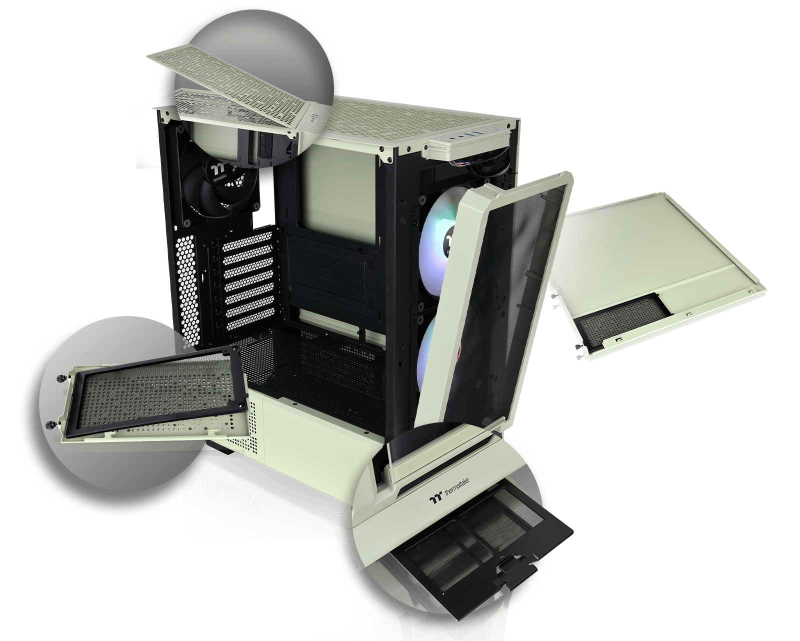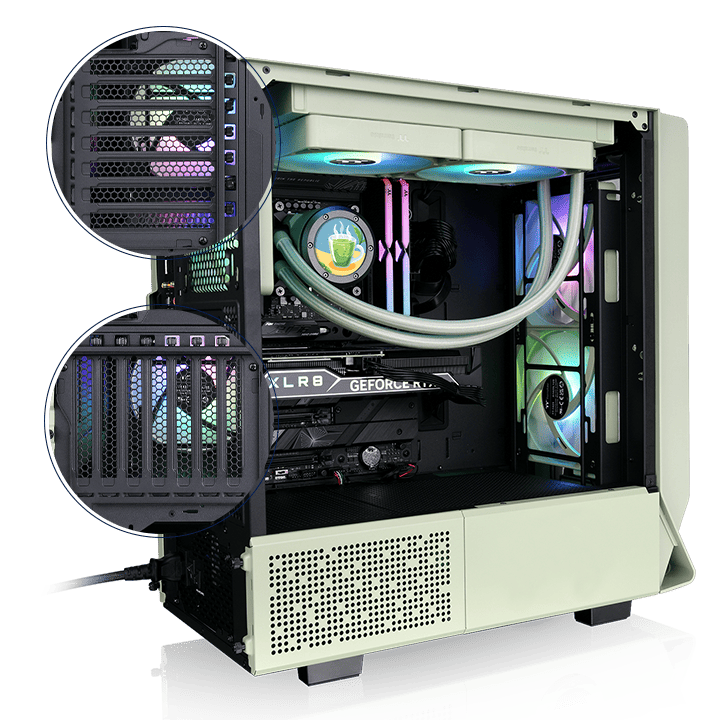 Created for next-generation Hidden-Connector motherboards, the Ceres 350 MX Matcha Green Mid Tower Chassis features a special design that enables support for both standard motherboards and hidden-connector motherboards.