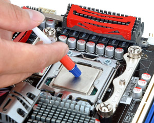 | Applying a thin layer of thermal grease onto the CPU. | Screw the heat-sink onto the motherboard with the mounting plate tightly. |