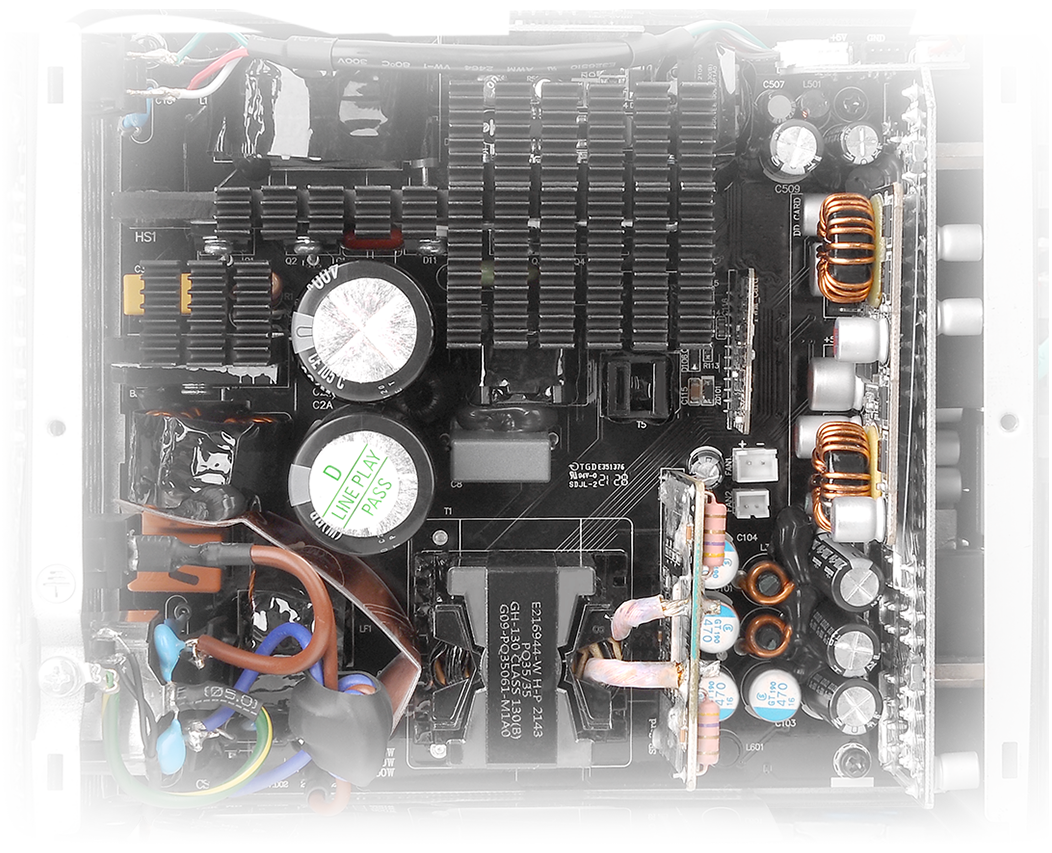 Toughpower GF2 ARGB 750W is certified to CYBENETICS GOLD in terms of efficiency level. The Gold overall efficiency rating is defined as ≥87% & <89% of 115V input and ≥89% & <91% of 230V input. There are six ETA certifications, covering an efficiency range from 82%. Besides the overall efficiency of a PSU, ETA also takes into account its overall Power Factor readings along with the efficiency of the 5VSB rail and the power that the unit consumes in standby (also called phantom power).