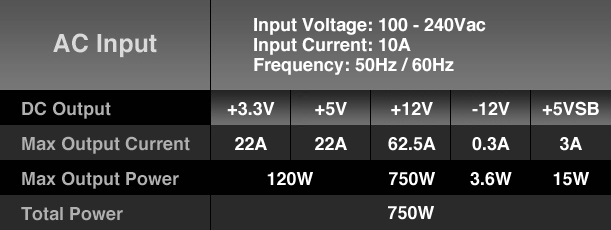 | Efficiency | Meet 80 PLUS®Gold at 115Vac input. |