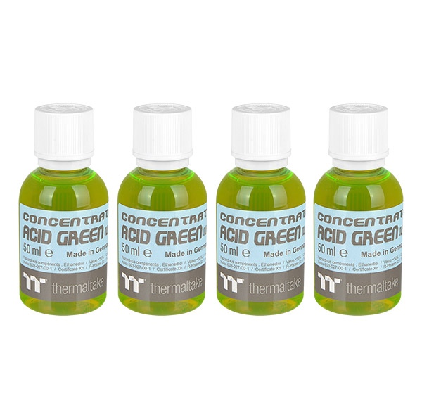 Specially designed for Thermaltake C1000 Opaque Coolant White/C1000 Pure Clear Coolant, the TT Premium Concentrate Series is ready-to-mix, anti-corrosion concentrate for coolant color-up in liquid cooling systems. Virtually odorless and non-flammable, the concentrate offers superb protection for copper, nickel, brass, and aluminum. Coming with eight vivid colors to choose from (blue, red, green, acid green, orange, yellow, purple and black), TT Premium Concentrate Series suits all water cooling systems and brightens up all builds with the excitement of color mix & match.
