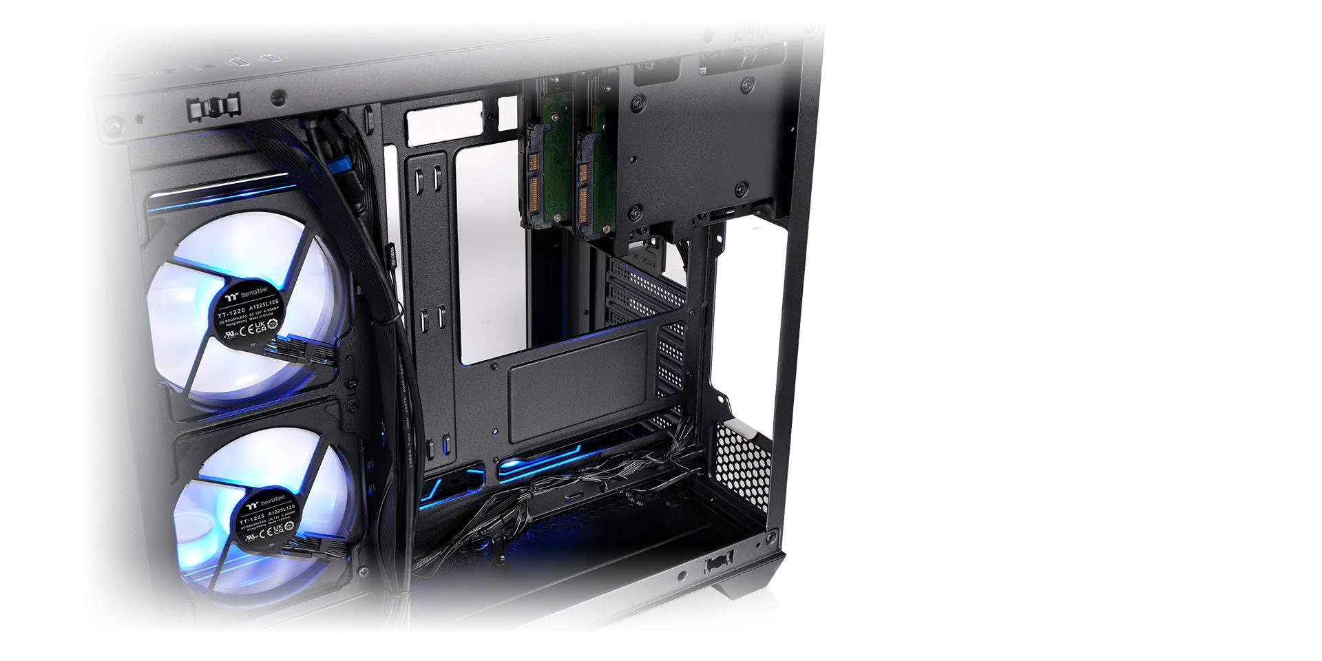 The Vision 330 CR ARGB is pre-installed with five 120mm Infinity ARGB Reverse PWM Fans on the MB side and bottom, along with one 120mm Infinity ARGB PWM Fan at rear. It’s fascinating lighting effects can be controlled by motherboard software from ASUS, GIGABYTE, MSI, and ASRock.